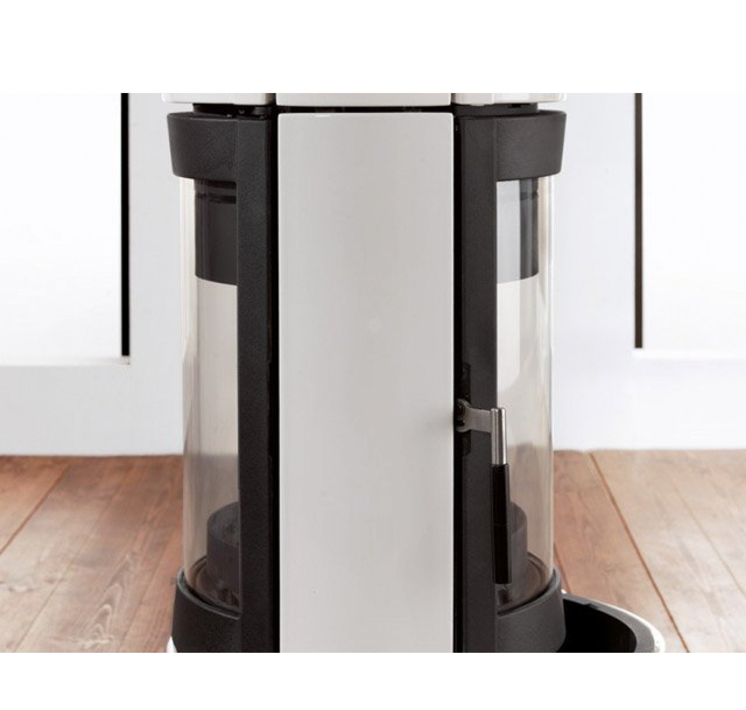 Возможные варианты цвета: белый и красный. Есть сиcтемы первичного воздуха, вторичного воздуха и третичного воздуха. Изогнутые дверцы топки сделаны из керамического стекла. Керамические детали выдерживают до 750°C. Наружные плиты изготовлены из майолики (цвет - бордо, белый инфинити).