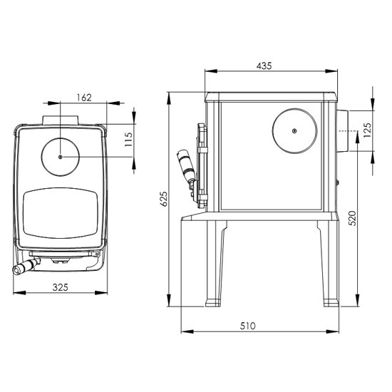 - Диаметр дымохода, (мм) 125