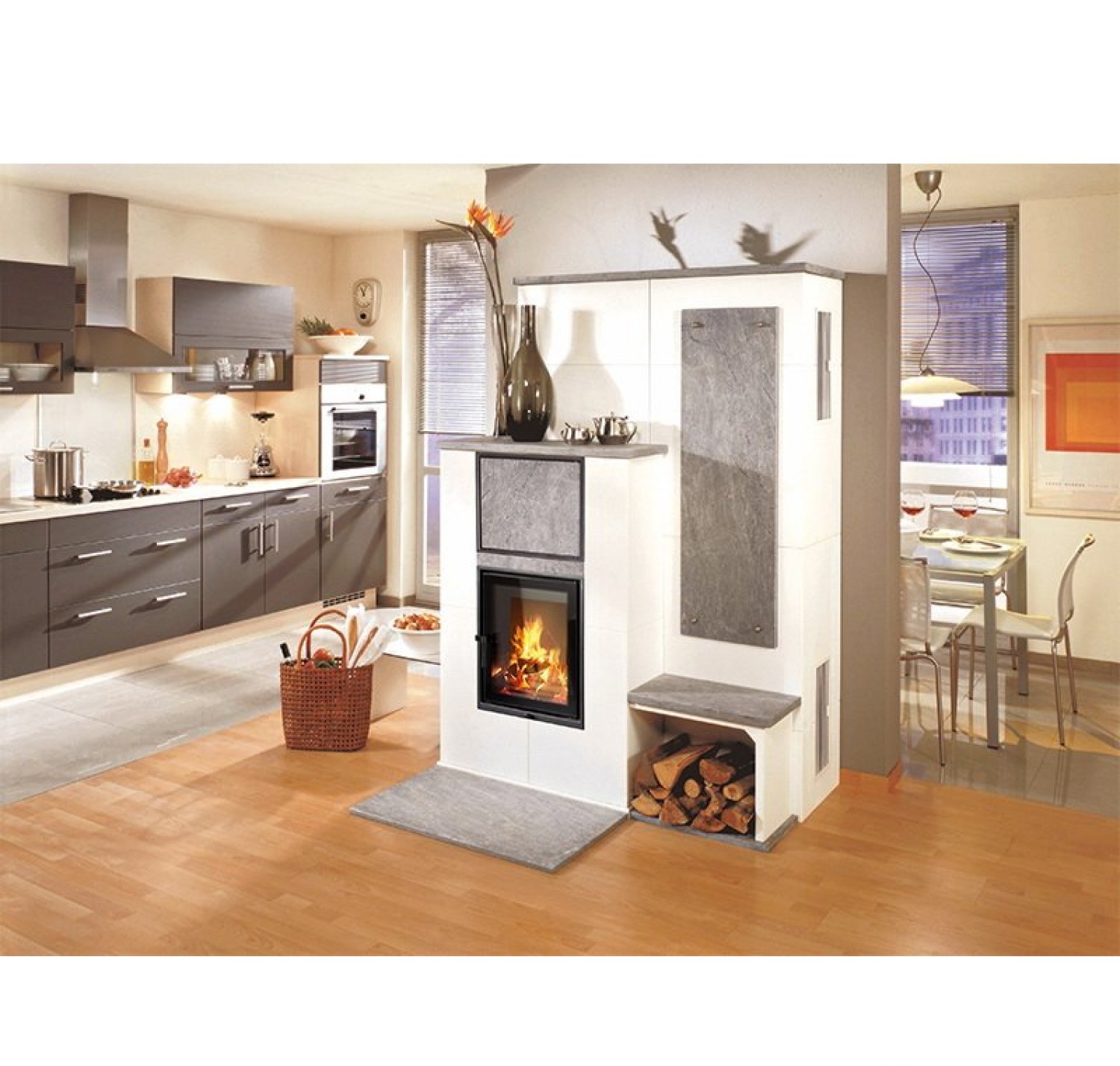 Теплонакопительные облицовки Schmid известны своей высокой эффективностью, своим респектабельным и элегантным дизайном, точностью подгонки элементов и простотой монтажа. Теплоемкость и теплопроводность этих облицовок — уникальны. Тепло накапливается каменной массой печи и отдается в комнату после топки равномерно и долго (до 5 часов). Экономятся дрова. Воздух в комнате долго остается теплым, сохраняя на оптимальном уровне влажность и особенно приятную атмосферу.