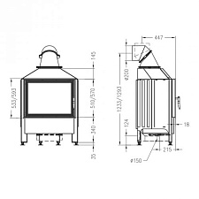- Диаметр дымохода, (мм) 150