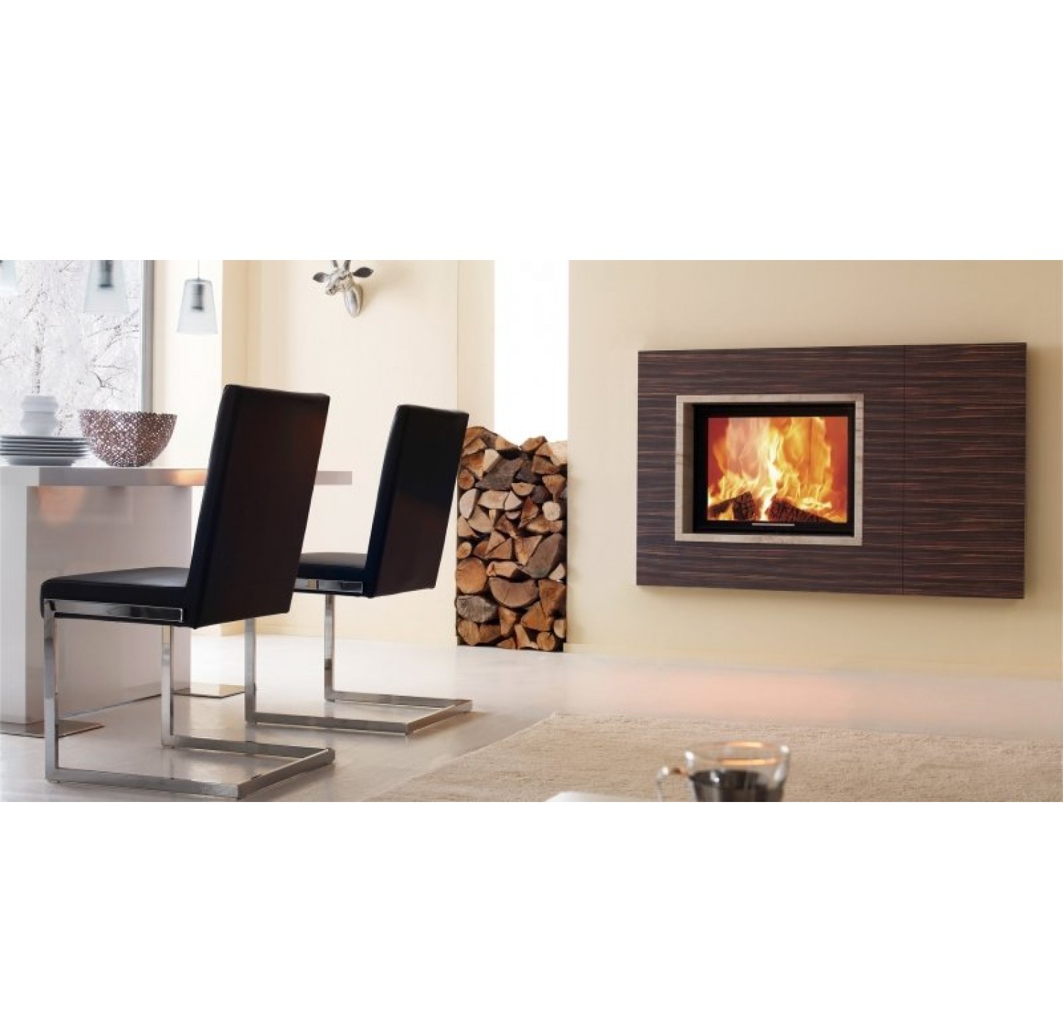 - «Система очистки стекла» препятствует скоплению сажи на стеклянном фасаде топки, оставляя его прозрачным на всем протяжении сеанса горения;