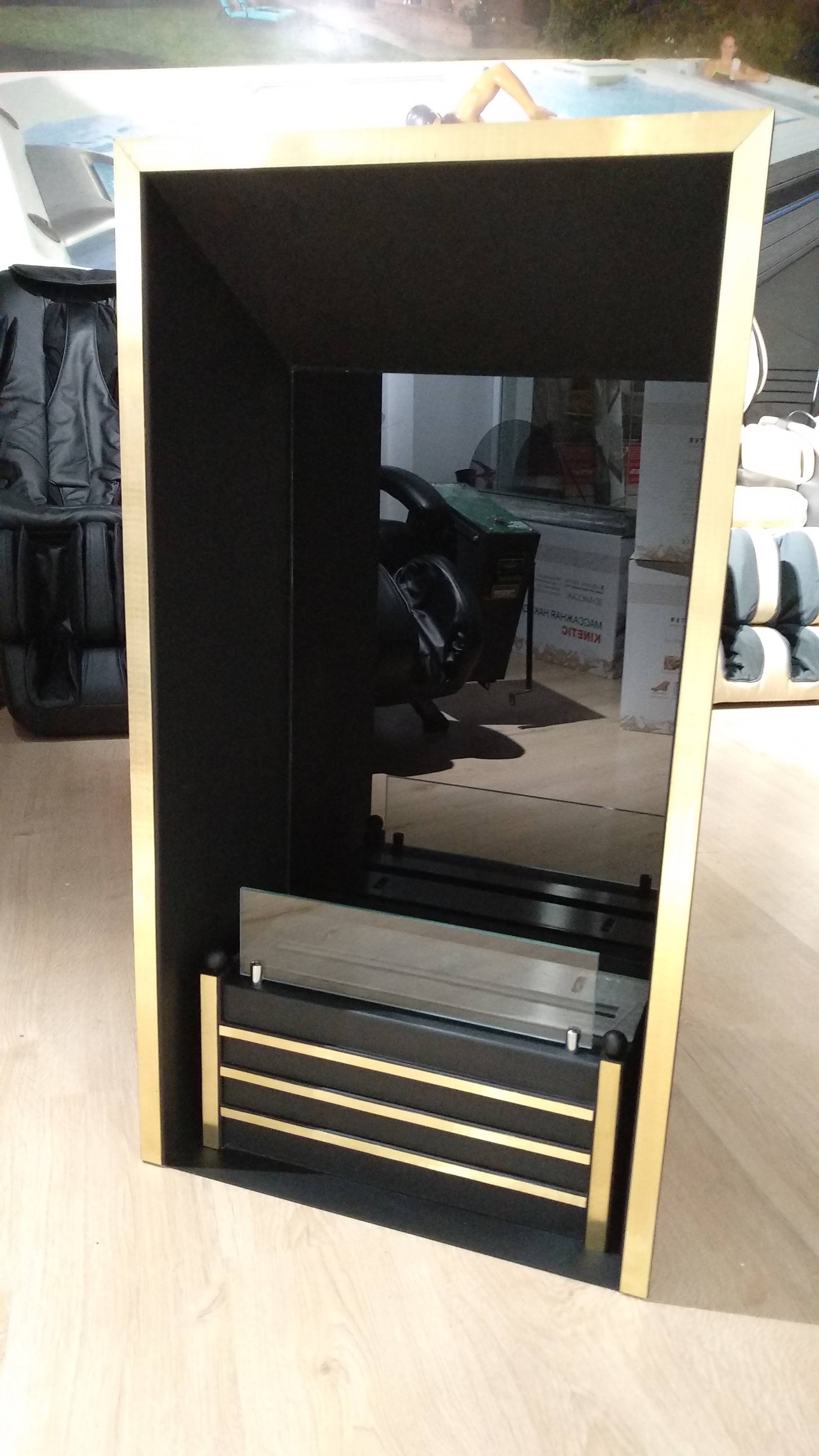 Сделали по индивидуальному заказу вертикальный встраиваемый биокамин с рамкой под золото. В заднюю стенку добавили закаленное тонированное светоотражающее зеркальное стекло стемалит. Хотите похожий вариант , звоните