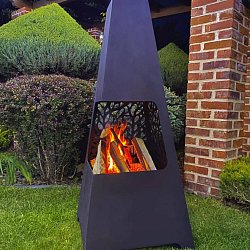 Стильный уличный биокамин занимает довольно немного места в саду. Его высота - 140 сантиметров, он смотрится как стильное украшение участка. Его размеры по низу - 60х60 сантиметров.