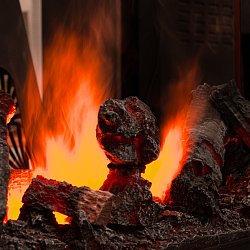 Паровой электрокамин не создает горения. Огонь имитируется подсвеченными струями пара, вследствие чего он не сушит воздух, не выделяет копоти и пепла, а, напротив, в процессе работы увлажняет воздух.