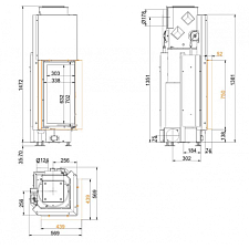 Топка Seguin prestige visio 8 plus с открытием двери в сторону, black line glass, с серыми кирпичами и двойной подачей воздуха