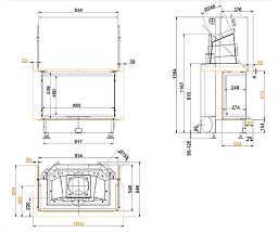 - Размеры очага ШхГхВ, (мм) 560x172x351